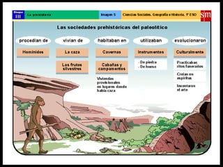 El documento describe la evolución humana desde los primeros homínidos como Australopithecus hace unos 5 millones de años hasta el Homo sapiens moderno. Explica las diferencias biológicas entre los humanos y otros primates como el bipedismo, el pulgar oponible y la capacidad de hablar. Luego resume las características de especies tempranas como Homo habilis, Homo erectus y Homo neanderthalensis antes de concluir con Homo sapiens.