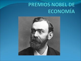 El documento proporciona información sobre los Premios Nobel de Economía. Explica que Alfred Nobel creó la dinamita y legó su fortuna para establecer los Premios Nobel originales. Más tarde, en 1968, el Banco Central de Suecia creó el Premio Nobel de Economía para honrar a Alfred Nobel, aunque es financiado por el Banco Central en lugar de la Fundación Nobel. El premio reconoce contribuciones destacadas a la disciplina económica.