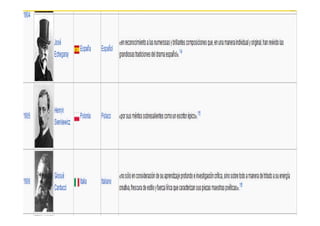 El documento presenta información sobre varios autores, obras literarias y eventos históricos. En 3 oraciones: Resume que presenta extractos de obras literarias de autores como Rudyard Kipling, Selma Lagerlof y Rabindranath Tagore, así como información sobre la Primera Guerra Mundial y el atentado que desató el conflicto en Sarajevo en 1914. También menciona detalles sobre ganadores del Premio Nobel de Literatura como Rudyard Kipling, Gabriela Mistral y Rabindranath Tagore.