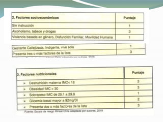 El documento describe objetivos para mejorar la atención prenatal y neonatal, incluyendo: (1) mejorar la calidad de la atención prenatal y promover el parto humanizado, (2) mejorar la calidad de emergencias obstétricas y neonatales, (3) prevenir la transmisión vertical del VIH y sífilis, y (4) fomentar la lactancia materna. También describe los beneficios de la psicoprofilaxis obstétrica en mejorar las actitudes, comportamientos y conocimientos de las madres durante el embarazo, parto