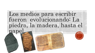 El documento resume la historia de la prensa desde sus orígenes hasta la actualidad. Explica que en la antigüedad, la habilidad de leer y escribir estaba reservada a una minoría privilegiada. La invención de la imprenta por Johannes Gutenberg a mediados del siglo XV permitió la reproducción masiva de textos. Esto llevó al desarrollo del periodismo moderno en el siglo XIX, cuando los periódicos se convirtieron en un medio para informar sobre los rápidos cambios sociales y económicos de la época