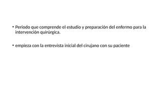 • Periodo quecomprende el estudio y preparación del enfermo para la