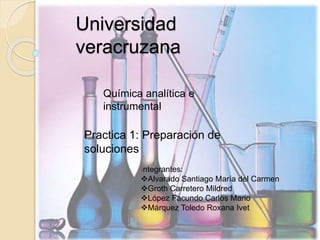 Este documento presenta los procedimientos para preparar soluciones de varios compuestos químicos como NaOH, AgNO3, Na2S2O3, EDTA, HCl, CH3COOH y NH4OH. Incluye cálculos para determinar las masas y volúmenes requeridos basados en las concentraciones deseadas. También contiene una tabla con información sobre la toxicidad e inhalación de cada sustancia y enlaces a hojas de seguridad.