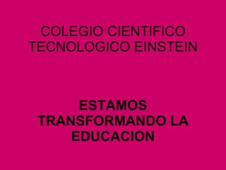 El documento promueve el Colegio Científico Tecnológico Einstein en Guatemala, destacando que están transformando la educación y creen en los estudiantes y en Guatemala. Repite varias veces la frase "Momentos Einstein" y "Los Mejores Momentos Einstein", y cita a Albert Einstein sobre la alegría de ver y entender.