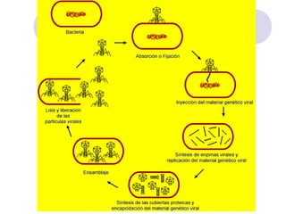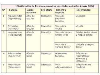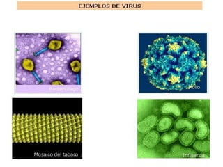 Los virus son organismos macromoleculares compuestos por ácidos nucleicos y proteínas que pueden infectar células y aprovechar su maquinaria metabólica para replicarse. No pueden reproducirse por sí mismos y deben parasitar células vivas. Existen muchas enfermedades virales humanas comunes como la poliomielitis, la gripe y el sarampión.