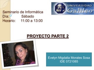 Este documento presenta un seminario de informática sobre proyectos de presentaciones en PowerPoint que incluyen temas como la publicación de páginas web, la inserción de videos, gráficos y archivos Flash, así como conceptos de ciberseguridad y tabletas disponibles en el mercado. El seminario se llevará a cabo el sábado de 11:00 a 13:00 horas.