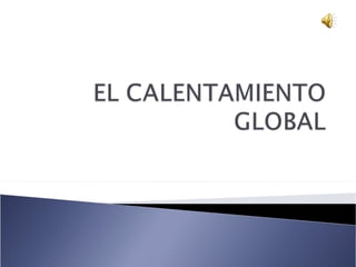 El documento describe el fenómeno del calentamiento global causado por el aumento de gases de efecto invernadero en la atmósfera debido a la quema de combustibles fósiles. Esto está elevando la temperatura promedio de la Tierra y derritiendo los polos, lo que aumenta el nivel del mar y las enfermedades relacionadas con el calor. El calentamiento global también amenaza ecosistemas, especies y la agricultura a través de sequías, incendios y cambios en los patrones climáticos. Se recomiendan acciones para