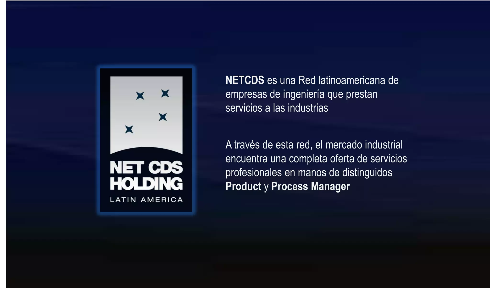 NETCDS es una red de empresas de ingeniería latinoamericanas que ofrecen servicios integrales a la industria, como consultoría, proyectos integrales y manufactura inteligente. La red opera a través de empresas agrupadas en nodos regionales y ofrece a las industrias una amplia gama de soluciones profesionales de ingeniería de manos de expertos en productos y procesos. El modelo sin precedentes de la red, junto con la alta experiencia de sus profesionales, garantizan resultados que satisfacen las necesidades del mercado industrial independientemente del