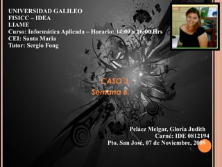 Este documento presenta una serie de diapositivas creadas en PowerPoint 2003 que muestran efectos de animación profesionales y diseños creativos. La presentación incluye información sobre Gloria Judith Peláez Melgar, como se hizo la presentación y su utilidad para proyectos empresariales o conferencias. El documento concluye que las presentaciones de PowerPoint son una gran ayuda en el mundo actual y recomienda analizar los efectos y entender el propósito de cada diapositiva.