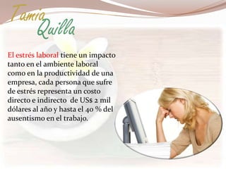 El estrés laboral tiene un impacto negativo en la productividad de las empresas y la salud de los empleados, causando un costo de $2,000 dólares por empleado estresado y hasta el 40% del ausentismo. Técnicas complementarias como la meditación y el masaje en el lugar de trabajo pueden reducir el estrés de forma inmediata. El masaje en silla específicamente restablece el equilibrio fisiológico y energético del cuerpo para calmar el sistema nervioso central.