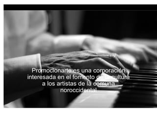 Promocionarte es una corporación que promueve la cultura y el arte en la comuna noroccidental a través de diferentes líneas de trabajo como sonido y eventos, promoción artística, servicios de producción audiovisual y formación artística.