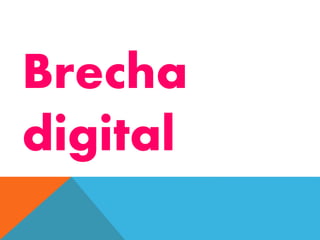 La brecha digital se refiere a las diferencias en la capacidad de usar tecnología debido a distintos niveles de alfabetización y habilidad tecnológica. Los factores que contribuyen a la brecha digital incluyen el nivel de ingreso, la localización geográfica, y la brecha de género. La piratería se refiere a la compra y venta ilegal de copias de productos protegidos por derechos de autor, y ocurre debido a factores como la falta de educación, dificultad de acceso