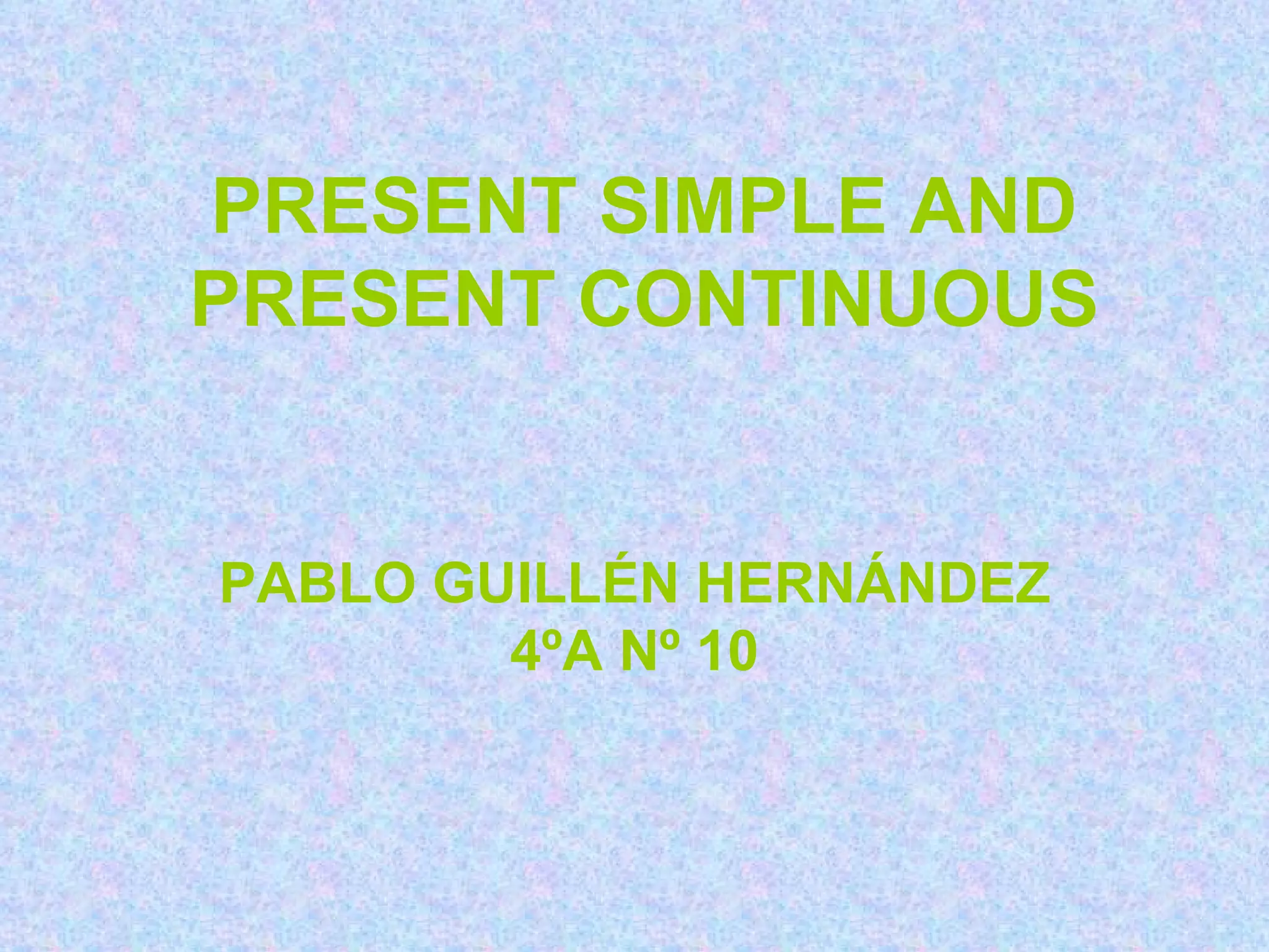 El documento describe las formas y usos del presente simple y presente continuo en inglés. Explica cómo se forma cada tiempo verbal, incluyendo tablas de conjugación afirmativa, negativa e interrogativa. También cubre reglas ortográficas, expresiones de tiempo, y diferencias entre los usos de cada tiempo verbal.