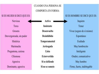 Este documento presenta una discusión sobre los roles y estereotipos de género. Explica cómo los juguetes y características asignadas tradicionalmente a niños y niñas refuerzan una división dicotómica entre lo masculino y lo femenino. También analiza cómo esta división tiene consecuencias negativas al asignar valor desigual a ciertas características y colocar a las mujeres en posiciones subordinadas. El documento concluye enfatizando que el género es una construcción social, no bioló