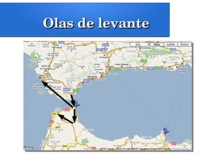 El documento es la agenda para una presentación titulada "Olas de levante" que tendrá lugar el 26 de enero de 2017 a las 19:00 en la Biblioteca Municipal de Montequinto. Incluye repetidamente el título del evento y un poema sobre el mar embravecido por el viento de levante.