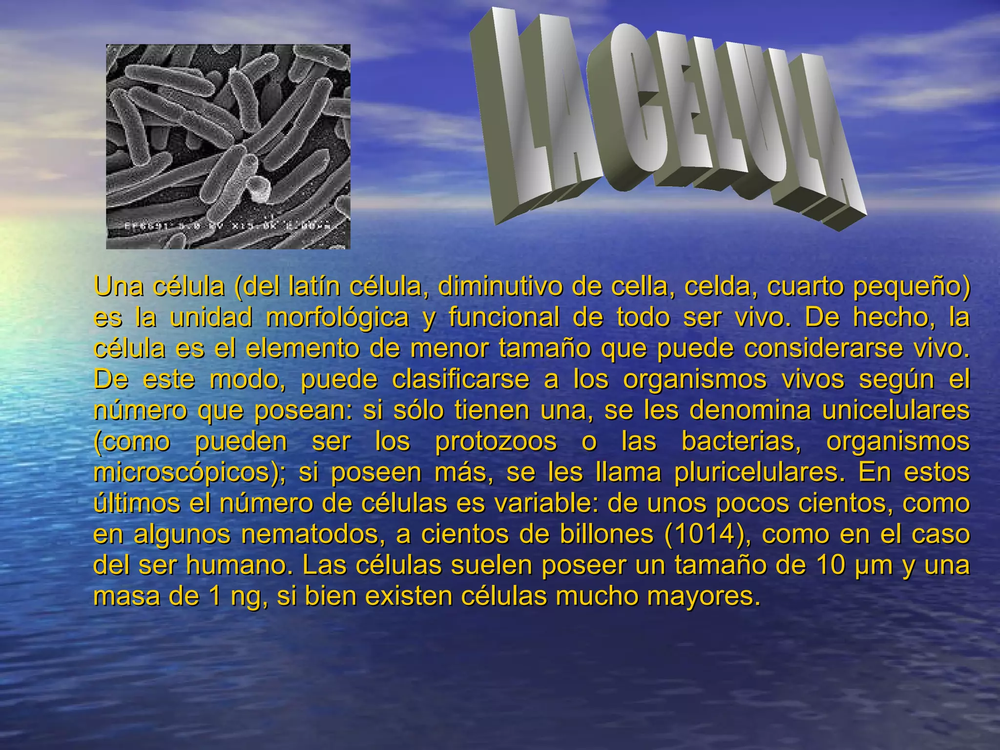 La célula es la unidad básica de todo ser vivo. Está compuesta de diversas estructuras y orgánulos que cumplen funciones vitales como la membrana, citoplasma, núcleo, mitocondrias y ribosomas. La teoría celular establece que la célula es la unidad morfológica y fisiológica fundamental de los seres vivos y que todas las células provienen de otras células preexistentes.