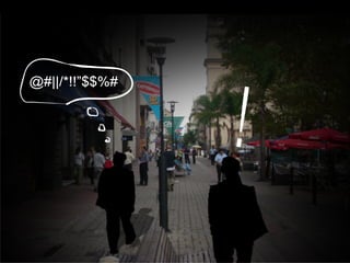 El documento habla sobre cómo las personas van apuradas por la calle sin prestar atención a lo que las rodea. Sugiere que algo podría sorprendernos si no agudizamos nuestros sentidos. Propone tres dispositivos que pueden redireccionar nuestra mirada para redescubrir la ciudad desde nuevas perspectivas.