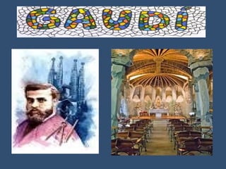 El documento presenta una breve descripción de algunas de las obras más famosas del arquitecto catalán Antoni Gaudí, incluyendo La Pedrera, Casa Batllo, Parque Güell y la Sagrada Familia, destacando detalles como los patios interiores y las chimeneas de estas obras, así como la consagración de la Sagrada Familia como basílica por el Papa Benedicto XVI.