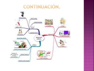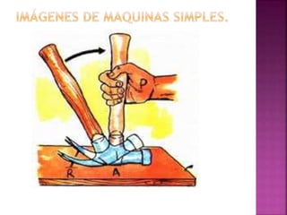 Las máquinas simples incluyen la palanca, la polea, el plano inclinado y la cuña. Transforman el movimiento y la fuerza aplicada en un movimiento o fuerza diferente según la ley de conservación de la energía. Las máquinas simples permiten realizar tareas con menos esfuerzo físico.