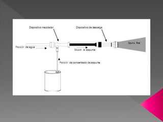 El documento resume diferentes métodos y sistemas de protección contra incendios. En menos de 3 oraciones: Los métodos para medir el flujo de agua incluyen el tubo de Pitot y el tubo de Venturi. Los gabinetes contra incendios se clasifican en Clase I, II y III según el tamaño de las válvulas. Los sistemas de extinción incluyen rociadores automáticos, polvos químicos secos, espuma y gases como el CO2 o derivados de halógenos.