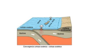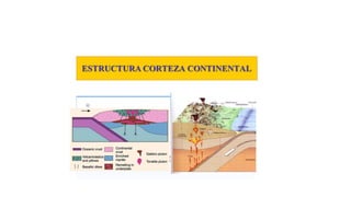 El documento describe la estructura interna de la Tierra, la cual está compuesta por la corteza, el manto y el núcleo. La corteza está fracturada en placas tectónicas que se mueven y chocan, causando fenómenos como volcanes y terremotos. El manto está dividido en manto interno y externo, y el núcleo en núcleo interno y externo.