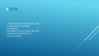 Este documento presenta un análisis estadístico de los datos sobre accidentes automovilísticos causados por el consumo de alcohol. La población de estudio es la cantidad de personas con alcohol en la sangre, que es finita. La variable de interés es la cantidad de personas que han tenido un accidente automovilístico debido al alcohol en la sangre. Se elabora una tabla de distribución de frecuencias y se calculan la media, mediana y moda. Finalmente, se concluye que los datos muestran la relación entre el consumo excesivo