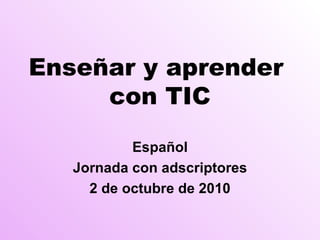 El documento presenta una discusión sobre el uso de las tecnologías de la información y la comunicación (TIC) en la enseñanza y el aprendizaje. Se describen las ventajas de usar las TIC como herramientas educativas, incluyendo la actualización de la información, el desarrollo de habilidades cognitivas y la motivación de los estudiantes. También se discuten algunos usos específicos de las TIC en la enseñanza del español, como blogs, foros, webquests y materiales interactivos.