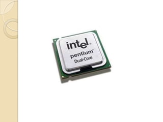 Este documento describe cuatro tipos de microprocesadores: el Intel Celeron D, los procesadores Intel Pentium 4 y Pentium 4 HT, el procesador Intel Pentium DUAL CORE y el procesador Intel Core 2 DUO. Se proporciona información sobre las características y especificaciones técnicas de cada uno.