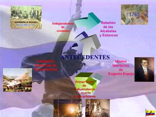 El documento describe la Batalla de Pichincha del 24 de mayo de 1822 en la que las tropas patriotas lideradas por el general Antonio José de Sucre derrotaron a las fuerzas realistas españolas y lograron la independencia de Quito (actual Ecuador). La batalla tuvo lugar en las laderas del volcán Pichincha y contó con la participación valiente de soldados como el Niño Héroe Abdón Calderón. La victoria patriota allanó el camino para que Quito y su territorio se incorporaran a la Gran Colombia liderada por Simón Bol