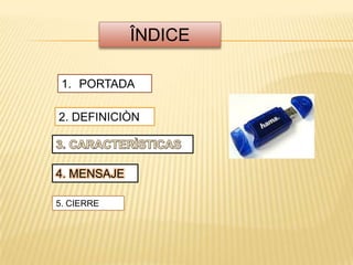 Este documento presenta información sobre los pendrives. Define un pendrive como un pequeño dispositivo de almacenamiento que utiliza memoria flash para guardar información que puede o no requerir baterías. Describe que los pendrives son comunes, pueden retener datos durante 20 años, y pueden escribirse hasta un millón de veces. Finalmente, recomienda el uso de los pendrives y expresa afecto.
