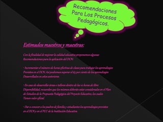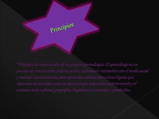 El documento presenta los lineamientos generales del diseño curricular de educación inicial y primaria en Perú. Establece que el currículo debe promover el desarrollo de la identidad cultural, la equidad educativa, la interculturalidad, la democracia, la ética y la inclusión. Además, debe fomentar valores como la conciencia ambiental, la creatividad, la innovación y el dominio de las tecnologías de la información. El diseño curricular comprende áreas como comunicación, matemáticas, ciencias sociales, educación