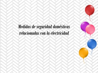 El documento ofrece tres medidas de seguridad relacionadas con la electricidad en el hogar: 1) Mantener los aparatos electrodomésticos lejos de agua, especialmente secadoras de cabello. 2) Desconectar los electrodomésticos antes de limpiarlos, aunque estén apagados. 3) No poner objetos de metal en partes activas de aparatos o enchufes, y desconectar cualquier aparato que se sobrecaliente.