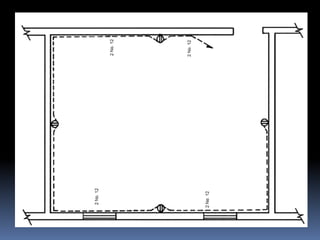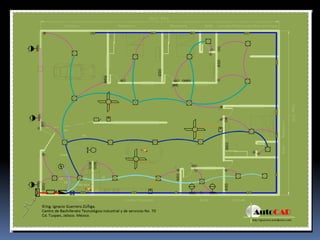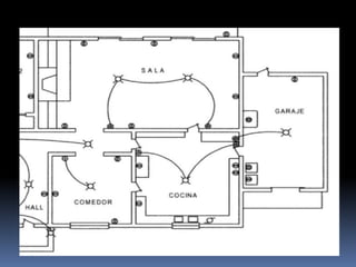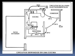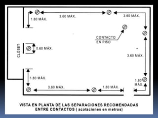 Este documento describe cómo calcular las cargas eléctricas necesarias para una casa habitación. Explica cómo determinar las cargas de alumbrado y contactos para áreas como la cocina, salas, baños y exteriores usando fórmulas como 20 vatios por metro cuadrado para alumbrado y 180 vatios por contacto. También cubre cómo calcular la carga total de la casa, la capacidad de los conductores y la protección requerida en el tablero eléctrico principal.