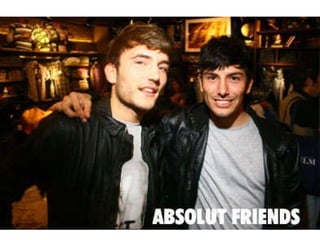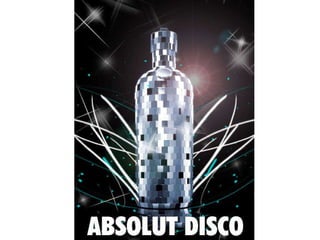 Este documento resume la historia de la marca de vodka Absolut desde su fundación en 1879 en Suecia hasta su posicionamiento actual como una de las marcas de bebidas alcohólicas más vendidas a nivel mundial. Explica su estrategia de expansión internacional a través de campañas publicitarias que rompen barreras culturales y su competencia directa con otras marcas líderes como Smirnoff. También analiza factores como las cinco fuerzas competitivas y el entorno PEST para la marca.
