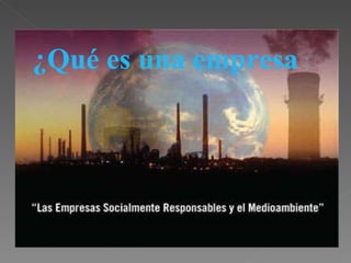 Una empresa socialmente responsable considera los impactos sociales y ambientales de sus acciones y busca beneficiar a la sociedad y al medio ambiente. Estas empresas respetan los derechos humanos, protegen el medio ambiente, son éticas y honestas, y colaboran con la comunidad a través de programas como becas y atención médica. Para ser socialmente responsable, una empresa debe guiarse por valores como la honestidad, el respeto, la coherencia y la generosidad en todas sus interacciones internas y externas.