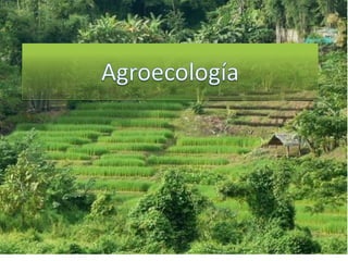 El documento discute los principios y beneficios de la agroecología. Se menciona que la agroecología permite la soberanía alimentaria, energética y tecnológica. Siguiendo los principios de la agroecología como la salud del suelo, plantas y personas, los sistemas agroecológicos son culturalmente sensibles, socialmente justos y económicamente viables a pequeña y mediana escala a través de la biodiversificación, conservación del suelo y uso de recursos locales y renovables.