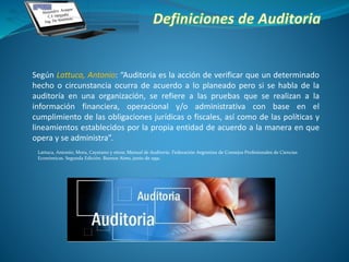El documento aborda la auditoría como un proceso de verificación de la información financiera, administrativa y operativa de las organizaciones para asegurar el cumplimiento de normativas y políticas internas. Se distingue entre auditoría interna y externa, siendo la primera realizada por empleados de la empresa y la segunda por auditores independientes, enfatizando la relevancia de auditorías informáticas en la gestión actual. Se describen diversos tipos de auditoría informática, incluyendo seguridad, desarrollo de proyectos, y sistemas, destacando la importancia de un auditor informático con conocimiento en administración y técnicas de calidad.