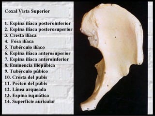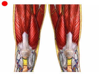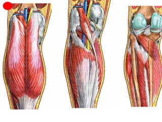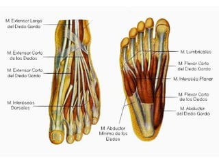 Este documento describe la anatomía del miembro inferior humano, incluyendo la osteología de los huesos principales como el fémur, tibia y huesos del pie. También describe las principales articulaciones como la cadera, rodilla y tobillo, incluyendo los ligamentos y meniscos. Finalmente, resume los principales grupos musculares del muslo, pierna y pie.