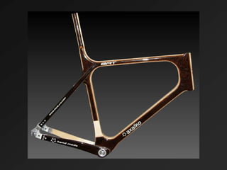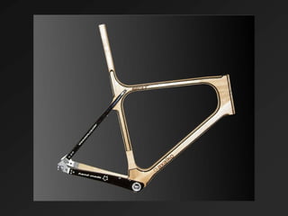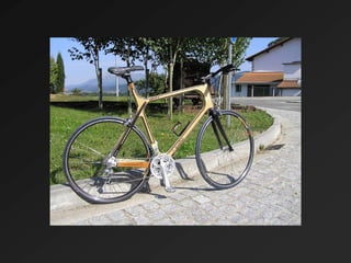 El documento describe el desarrollo de una nueva bicicleta de madera llamada AXALKO BAT. Se creó tras un largo proyecto de investigación y desarrollo realizado por un equipo con experiencia en la transformación de la madera. El cuadro de la bicicleta se fabrica a mano con diferentes maderas para lograr ligereza, resistencia y absorción de vibraciones, combinando la tecnología y la experiencia artesanal.