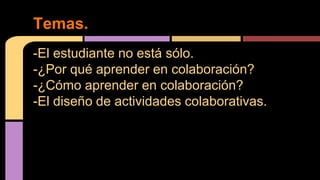 El documento habla sobre la educación virtual y el aprendizaje colaborativo. Explica que aunque los estudiantes suelen estar solos, ahora comparten opiniones e ideas con otros estudiantes y profesores a través de redes. El aprendizaje colaborativo ofrece ventajas como crear interdependencia positiva y facilitar el intercambio de información. Finalmente, propone algunas actividades colaborativas como debates virtuales, indagaciones y simulaciones.