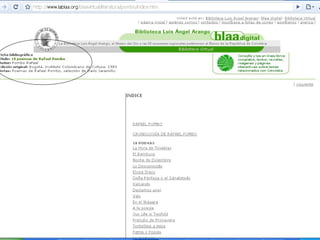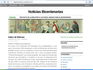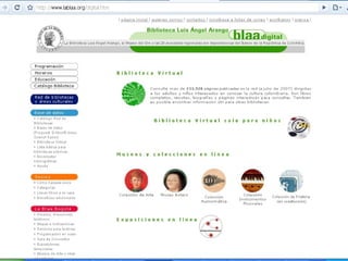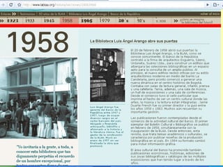 El documento aborda los retos de las bibliotecas digitales y físicas, incluyendo la gestión de formatos y el acceso a contenidos digitales, así como la relevancia de la presencia web. Se discuten temas como derechos de autor, preservación digital, y la capacitación del público en recursos digitales. Además, se menciona la biblioteca digital colombiana y la asesoría para la catalogación y montajes de bases de datos en instituciones educativas.