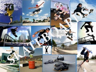 El skateboarding fue inventado en 1963 en California como sustituto al surf en tierra, quitando las ruedas a unos patines y poniéndoselas a una tabla de madera. Existen dos tipos, el estilo callejero y el estilo vertical en rampas. Algunos trucos básicos son el ollie, el fakie y los giros frontside y backside.
