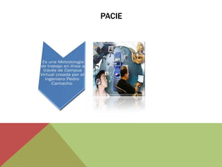 El documento describe la estructura de un entorno virtual de aprendizaje (EVA) organizado en tres bloques por el Programa de Expertos en Elearning (PACIE). El Bloque 0 o Bloque PACIE contiene información general del curso, quién es el tutor, y la evaluación. Se divide en tres secciones: información, comunicación e interacción. El Bloque Académico contiene el contenido y actividades del curso. El Bloque de Cierre marca el fin del curso. El Bloque PACIE es fundamental para organizar el proceso y generar un aprend
