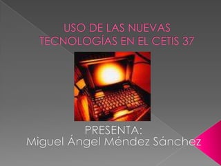 El documento describe las carencias del CETIS 37, incluyendo su ubicación cerca de comercios que distraen a los estudiantes y la falta de computadoras e internet adecuados en los laboratorios. También explica que muchos estudiantes tienen dificultades económicas y que la falta de acceso a internet los afecta. Por lo tanto, el CETIS 37 busca mejorar el acceso a internet de los estudiantes y alentar el uso de herramientas digitales para que puedan interactuar y compartir trabajos.