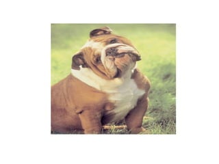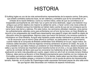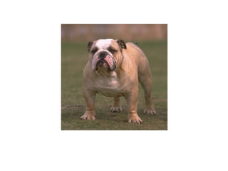 El bulldog inglés fue originalmente un perro de pelea contra toros en Gran Bretaña, y se ha convertido en un símbolo nacional. Aunque su origen exacto no se conoce, se cree que descienden de perros celtas grandes que combatían a las legiones romanas. Actualmente son mascotas populares para familias con niños debido a su naturaleza dócil y amigable, aunque requieren un cuidado firme para su entrenamiento.
