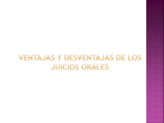 El documento compara los sistemas de juicio penal escrito, oral y mixto, y discute las ventajas y desventajas de cada uno. Explica que México actualmente usa un sistema de juicio escrito pero que existe un movimiento para adoptar elementos del juicio oral. Sin embargo, señala que México no está preparado para realizar juicios completamente orales debido a limitaciones de capacitación e infraestructura, y sugiere en cambio adoptar un enfoque mixto que incorpore lo mejor de ambos sistemas.