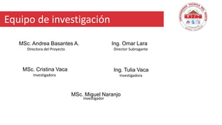 El documento presenta un proyecto de investigación para implementar un Campus Educativo Virtual en la Universidad Técnica del Norte. El objetivo general es desarrollar programas de capacitación continua apoyados en tecnologías de información. El equipo de investigación determinará las necesidades de capacitación, diagnosticará la infraestructura tecnológica, diseñará el entorno virtual de aprendizaje y establecerá estándares de calidad para los cursos virtuales. Se espera que el campus virtual ofrezca oportunidades de capacitación y certificación