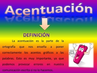 El documento habla sobre diversos temas relacionados con la ortografía, puntuación, partes del discurso y la comunicación. Explica la importancia de la acentuación y cómo esta puede cambiar el significado de las palabras. También describe los diferentes tipos de párrafos, oraciones, signos de puntuación, y diferentes tipos de discursos y comunicación.
