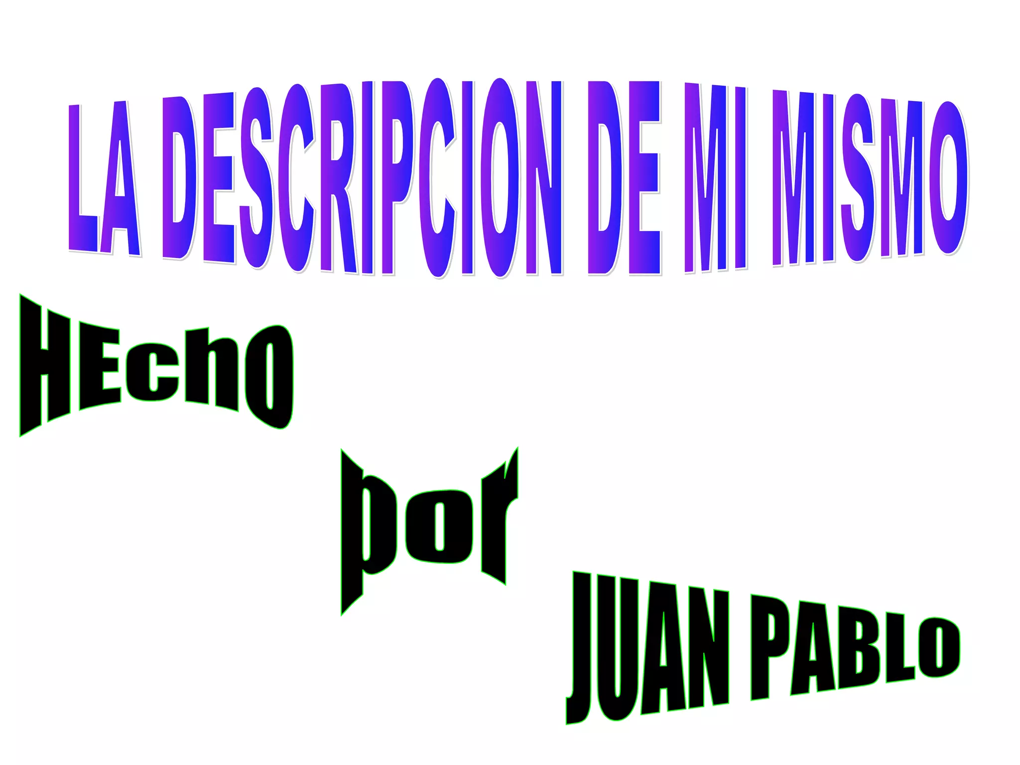Juan Pablo Velandia Plazas es un niño de 12 años de edad que se describe a sí mismo. Mide 1.55 metros y tiene el pelo negro, ojos verdes, nariz larga y boca fina. Aunque es bajo y delgado, se considera físicamente normal. Se describe como una persona amable, simpática y generosa, pero también admite haber sido a veces miedoso, egoísta y mentiroso.
