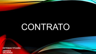 Este documento presenta información sobre diferentes tipos de contratos, incluyendo contratos de trabajo y contratos civiles. Describe varios tipos de contratos de trabajo como contratos a plazo fijo, tácito, indefinido, de prueba, por obra cierta, eventual, por temporada y parcial permanente. También explica la estructura básica de un contrato y los elementos comunes de los contratos civiles como arrendamiento y compra-venta.